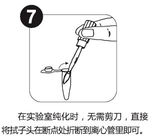 5.拭子后段的可折断设计,避免了使用剪刀等剪切拭子带来的潜在汚染,有利于后续DNA纯化过程。
